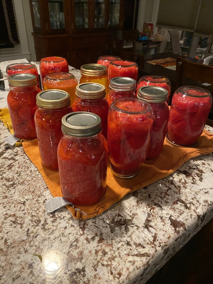 Canning season is in full swing! I can’t turn down “free food”. It’s not in my nature. Even though I can’t eat tomatoes. They’re inflammatory, my family can. And they love canned tomatoes puréed in soups, etc. So when my husband’s aunt offered her beautiful Roma’s, I said yes! I added a teaspoon of lemon juice and 1/2 teaspoon salt for flavor. The lemon juice adds the acidity needed to help the tomatoes retain their flavor. Yum! 2 batches done in about 4 hours. It would’ve taken less time, but I had children to pick up/drop off at school and work in-between canning! Crazy but good life of a mom!